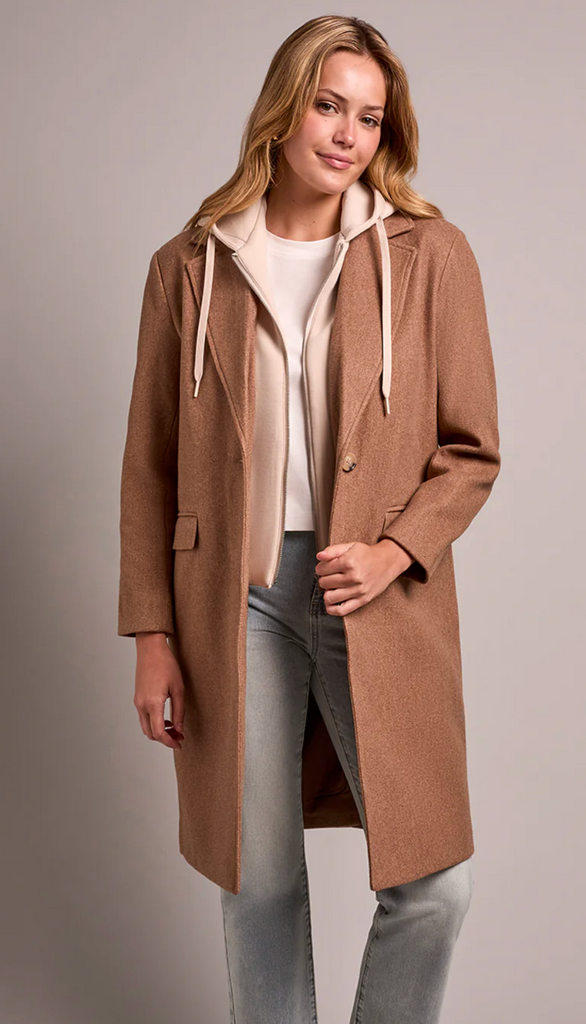 Tribal Trench Coat W Fooler Hoodie Oatmeal